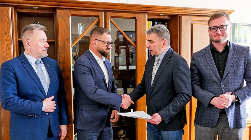 ZDM podpisał dziś umowę na przebudowę wiaduktu nad ul. Wał Tarejwy. Wykonawcą prac będzie firma BANIMEX z Siemianowic Śląskich. Podpisy na umowie złożyli: Grzegorz Pająk, dyrektor ZDM oraz Łukasz Zajdler, prezes zarządu firmy BANIMEX sp. z o.o.