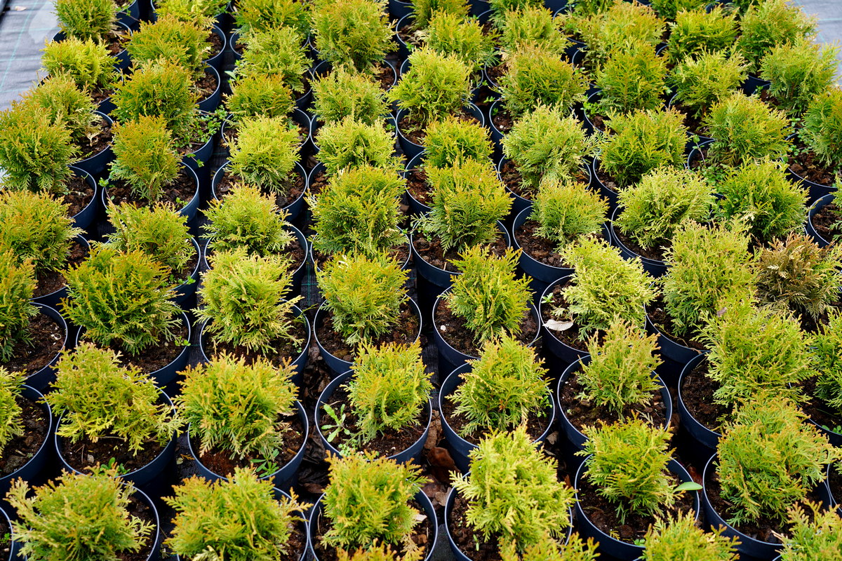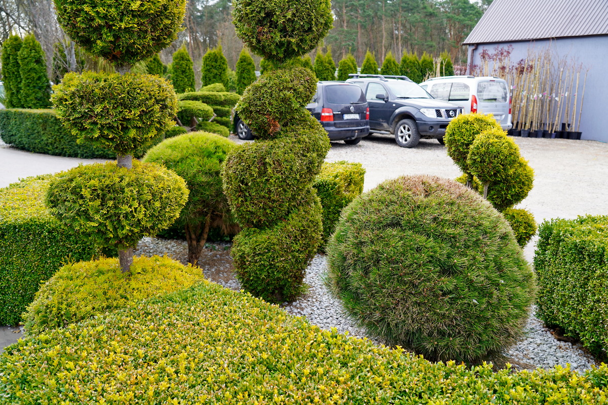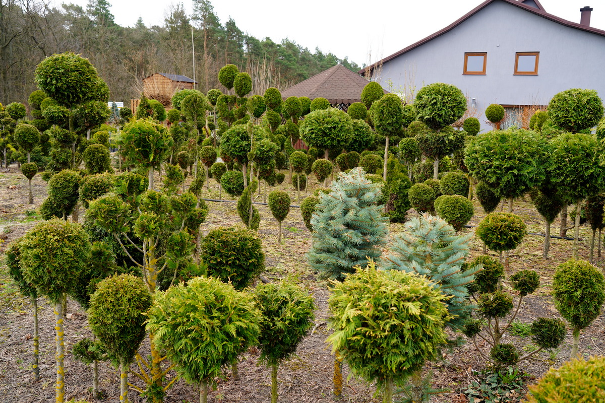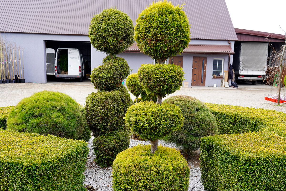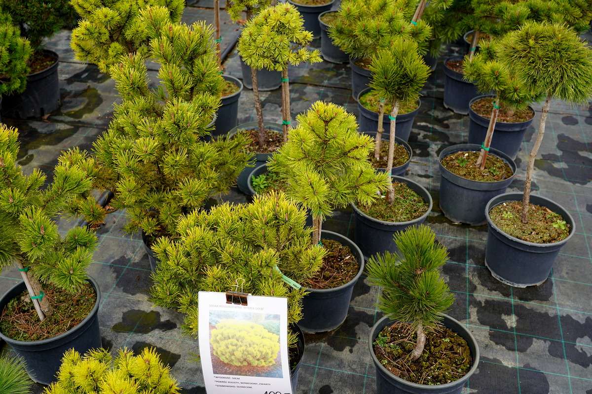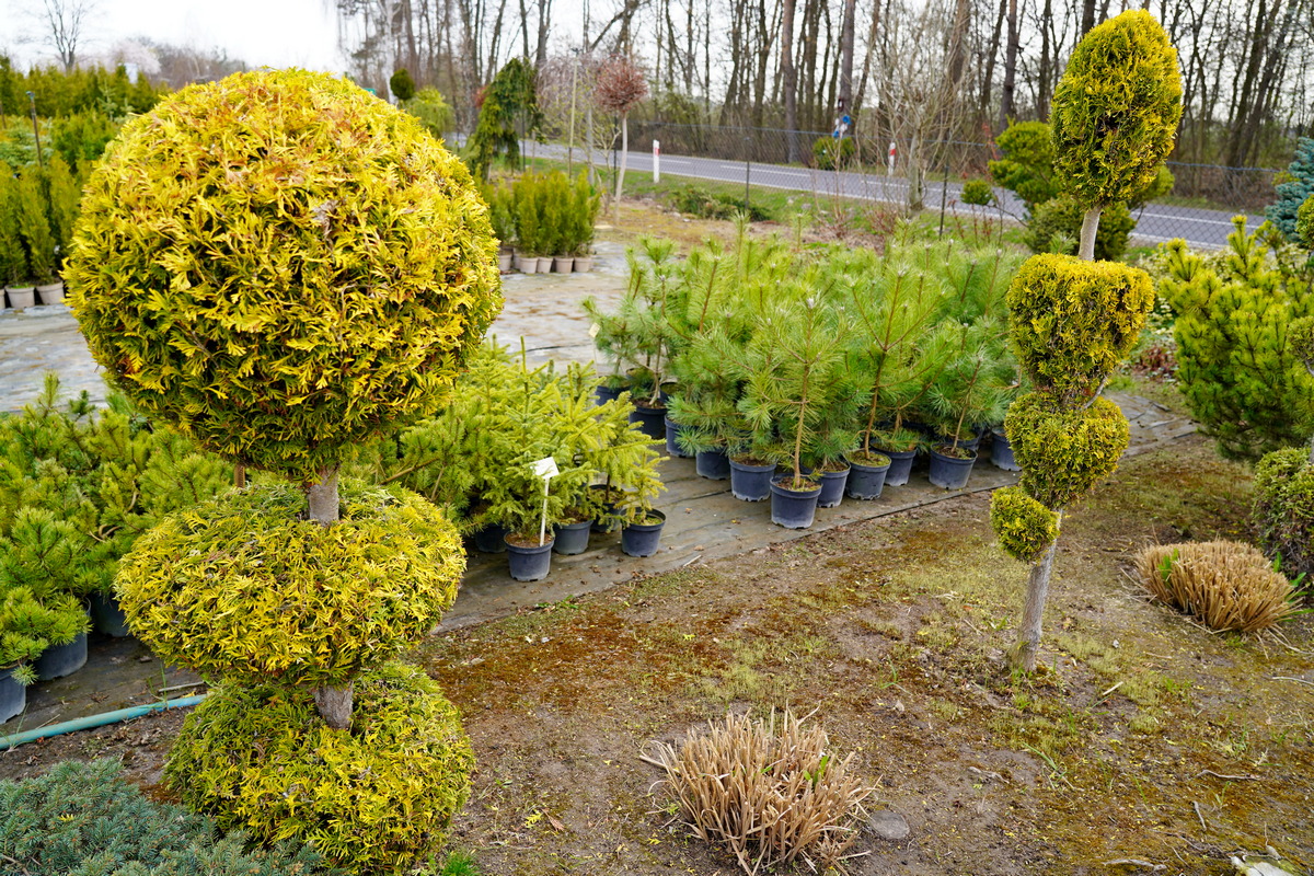 Róże pienne, ambrowce kuliste, kolumnowe i w formie drzewa, miskanty Memory, berberysy Orange Ice i Green Carpet, tuje Danica i Miriam, modrzewie japońskie, jałowce blue Chip, blue Star, procumbensy nana, laurowiśnie Novita, jest tego mnóstwo! Wierzba Hakuro Nishiki i Kilmarnock, różaneczniki na pniu, jeśli szukacie egzotyki to też Was nie zawiodą, mają piękne palmy i sporych rozmiarów drzewa oliwne.
