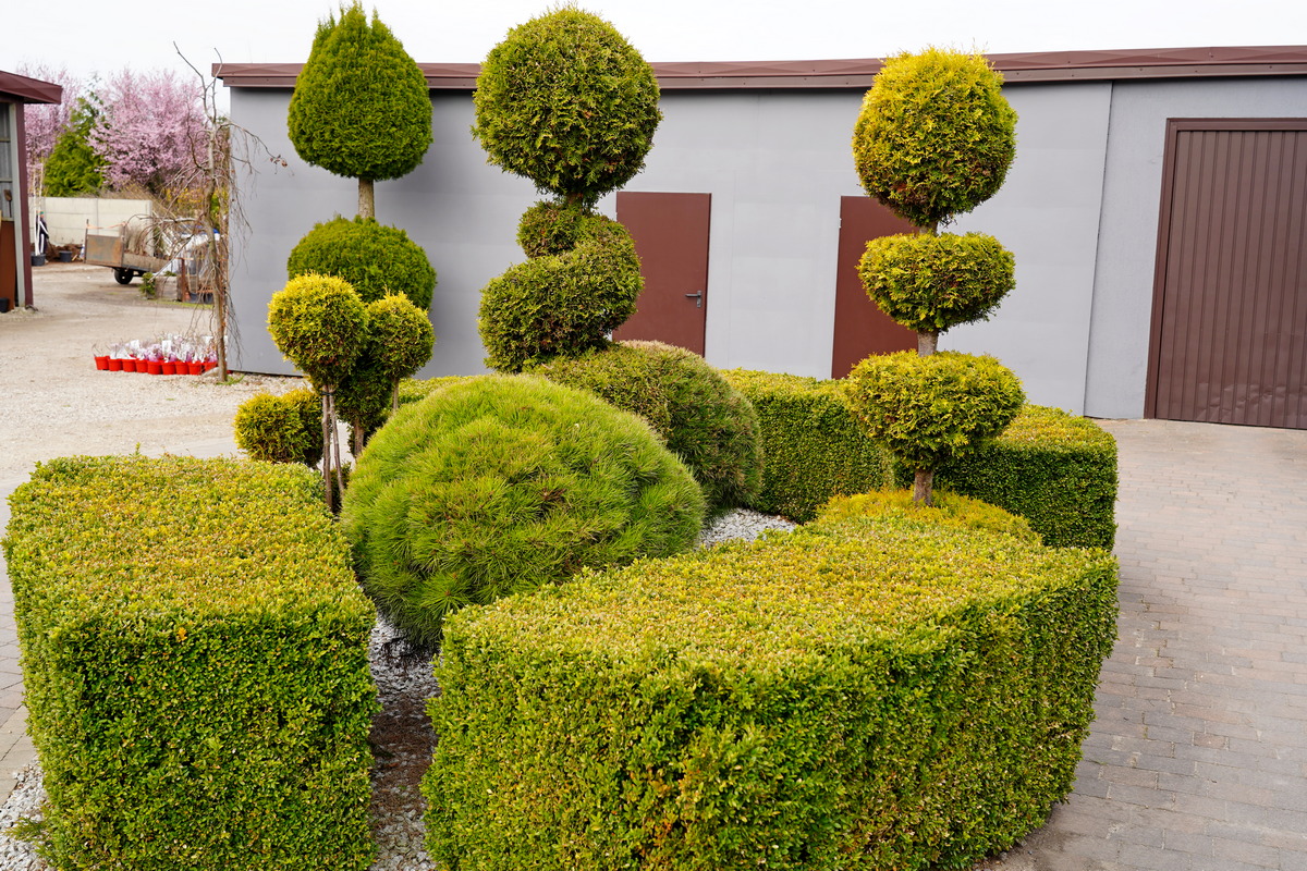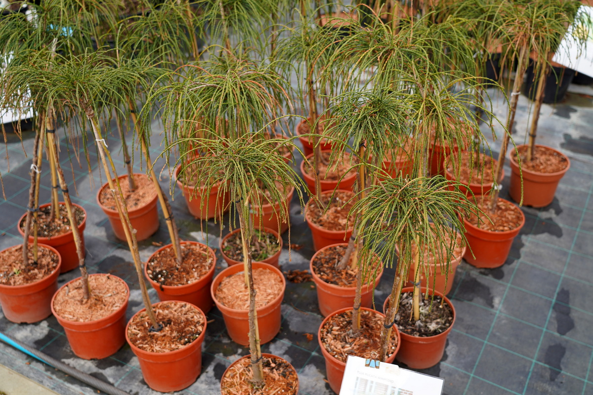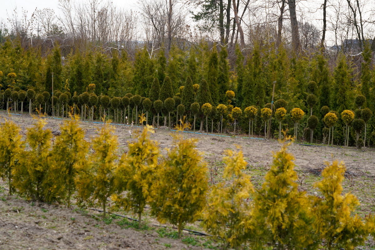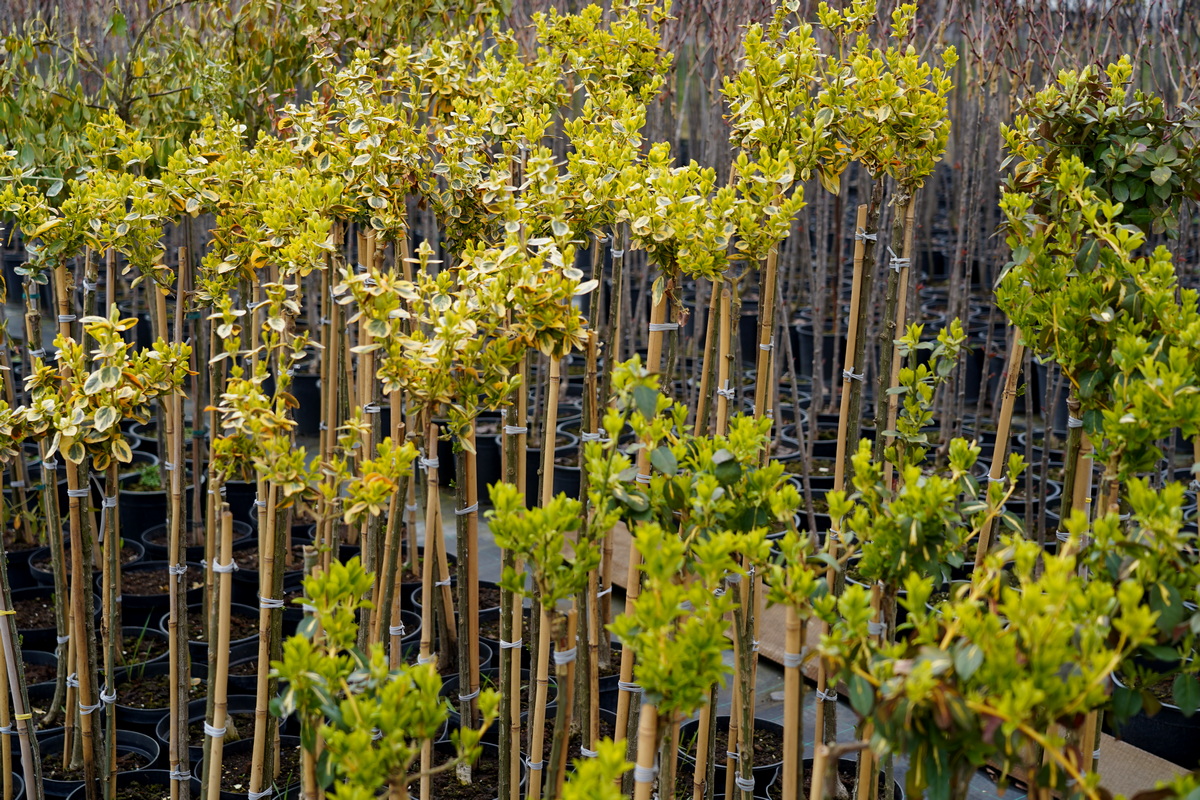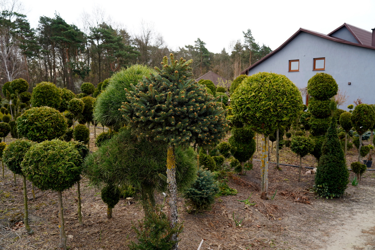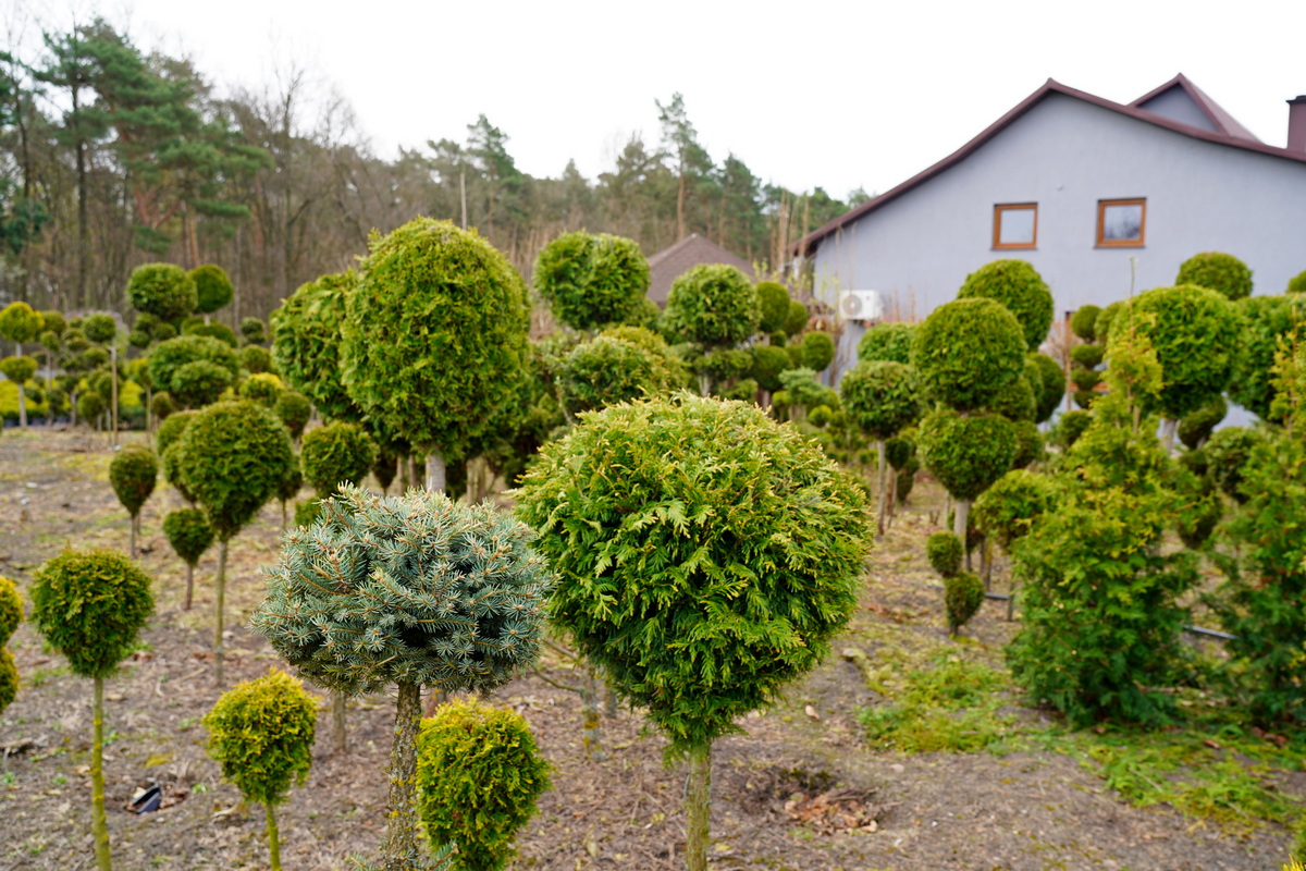Róże pienne, ambrowce kuliste, kolumnowe i w formie drzewa, miskanty Memory, berberysy Orange Ice i Green Carpet, tuje Danica i Miriam, modrzewie japońskie, jałowce blue Chip, blue Star, procumbensy nana, laurowiśnie Novita, jest tego mnóstwo! Wierzba Hakuro Nishiki i Kilmarnock, różaneczniki na pniu, jeśli szukacie egzotyki to też Was nie zawiodą, mają piękne palmy i sporych rozmiarów drzewa oliwne.